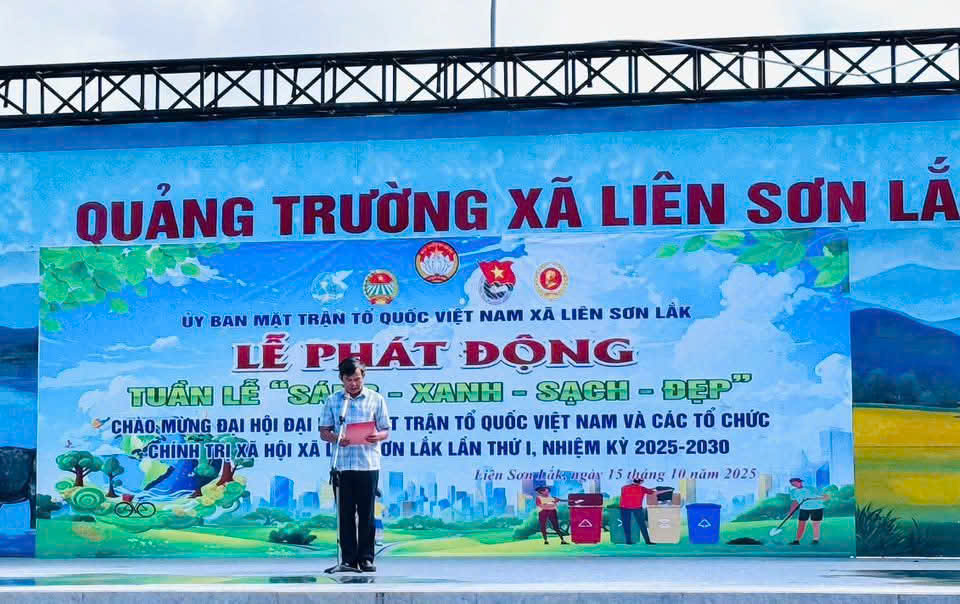 Xanh - Sạch - Đẹp" chào mừng Đại hội đại biểu Mặt trận Tổ quốc Việt Nam và các tổ chức chính trị - xã hội xã Liên Sơn Lắk khoá I, nhiệm kỳ 2025 - 2030. Tham dự lễ phát động có đồng chí Đào Thị Thanh An...